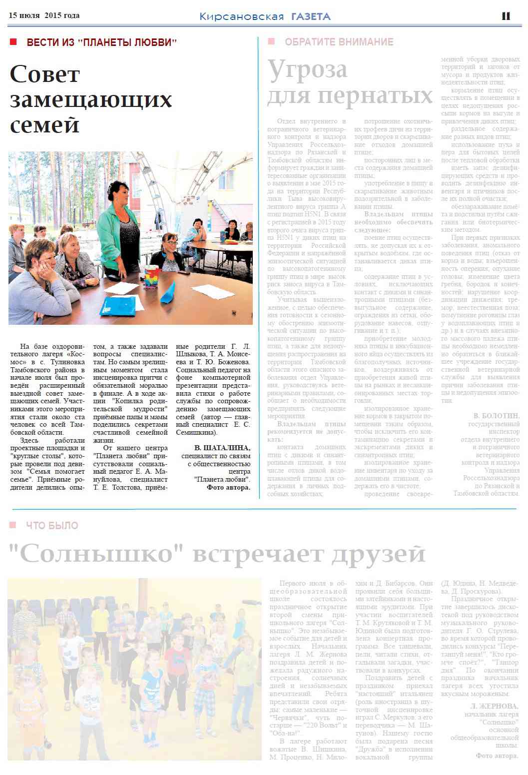 Вести из «Планеты любви» («Кирсановская газета» от 29 июня 2016 г)